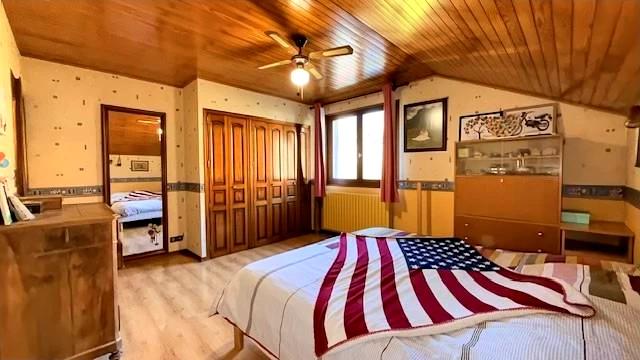 – Grand hall d’entrée avec rangement (14 m2), trois chambres avec rangements, cuisine équipée (15 m2) et séjour lumineux (36 m2) avec insert bois accédant tous deux à la terrasse semi-couverte exposée Est (vue dégagée sur les montagnes), wc indépendant avec fenêtre, salle de douche avec rangement.